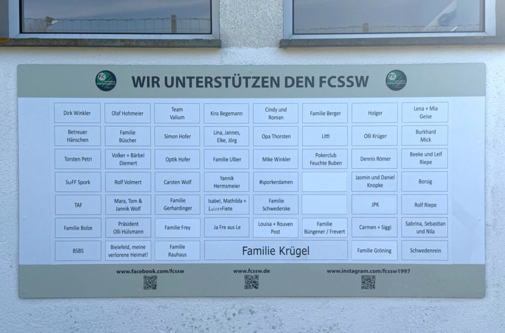 Ob seit Jahren aktiv oder in Einzelfällen engagiert, ob in Materialien oder finanziell, ob mit größeren Beträgen oder mit dem kleinen Schein für unsere Unterstützer-Tafel am Sporthaus: Wir sind dankbar für jede Unterstützung unserer Teams oder der Jugendarbeit. Vielen Dank an alle helfenden Hände und unsere Sponsoren!